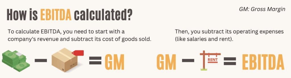 What’s the difference? In calculating EBITDA you don’t factor in Interest, Taxes & Depreciation. Net Income however, is what is left as actual profit once all of the costs are taken into account.